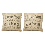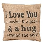 I Love You a Bushel and Peck Small 8 x 8 inch Square Decorative Burlap Throw Pillow, Pack of 2